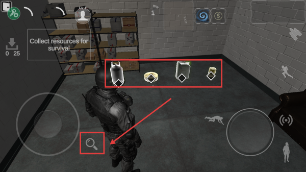 3。按照提示,将角色移近供应物后,单击“视图”按钮以拾取所有耗材。
