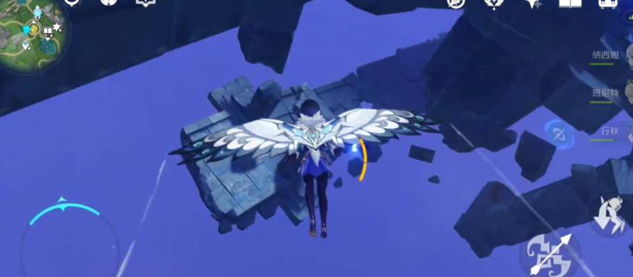 2.获得第一个宝箱后,使用两次传送,然后左转,飞到下图所示的位置然后沿着路前进,使用弓箭手完成挑战,获得精美的宝箱。