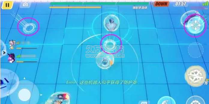 有时你需要将敌人吸引到指定范围(紫色圆圈),并与艾因酱一起解除敌人的防护罩。所以,在联合作战的过程中,队长们必须相互配合,才能顺利通关!