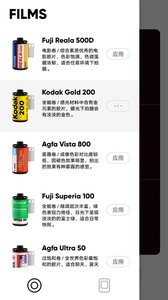 1.胶片色彩还原:通过精准的色彩算法,本应用可以真实还原众多经典胶片的色彩,包括柯达、富士、爱克发等品牌的胶片。用户可以选择已经上架的影片,也可以期待不定期上架的新片;