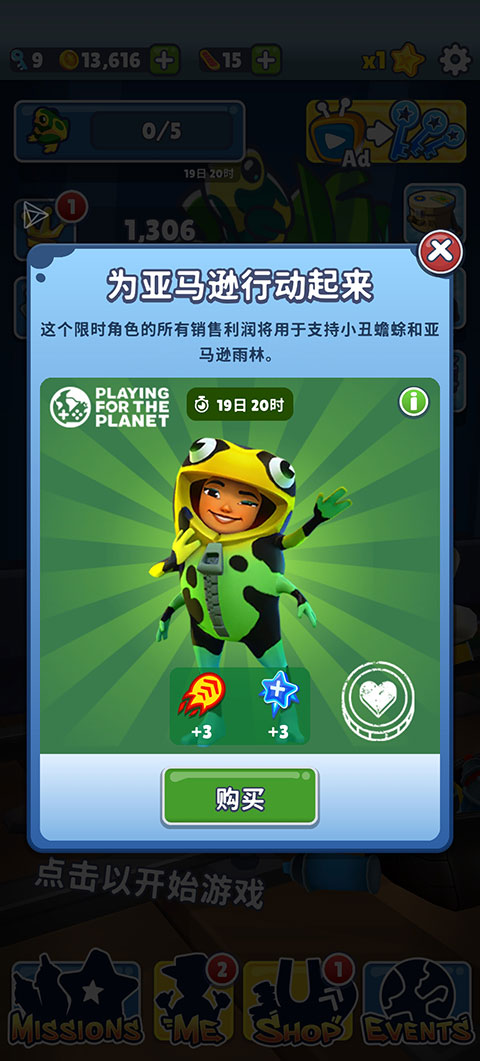 地铁跑酷无限金币版无限钥匙下载最新版不用登录是一款非常刺激的跑酷游戏,你需要为亚马逊雨林贡献你的力量!穿上Yutani 专属的小丑蟾蜍套装,隐藏在热带雨林中,保卫亚马逊野生动物。你还可以解锁贾曼塔的新滑板,前往海底世界收集活动金币,为清理海洋的战斗做好准备。立即下载并体验吧!