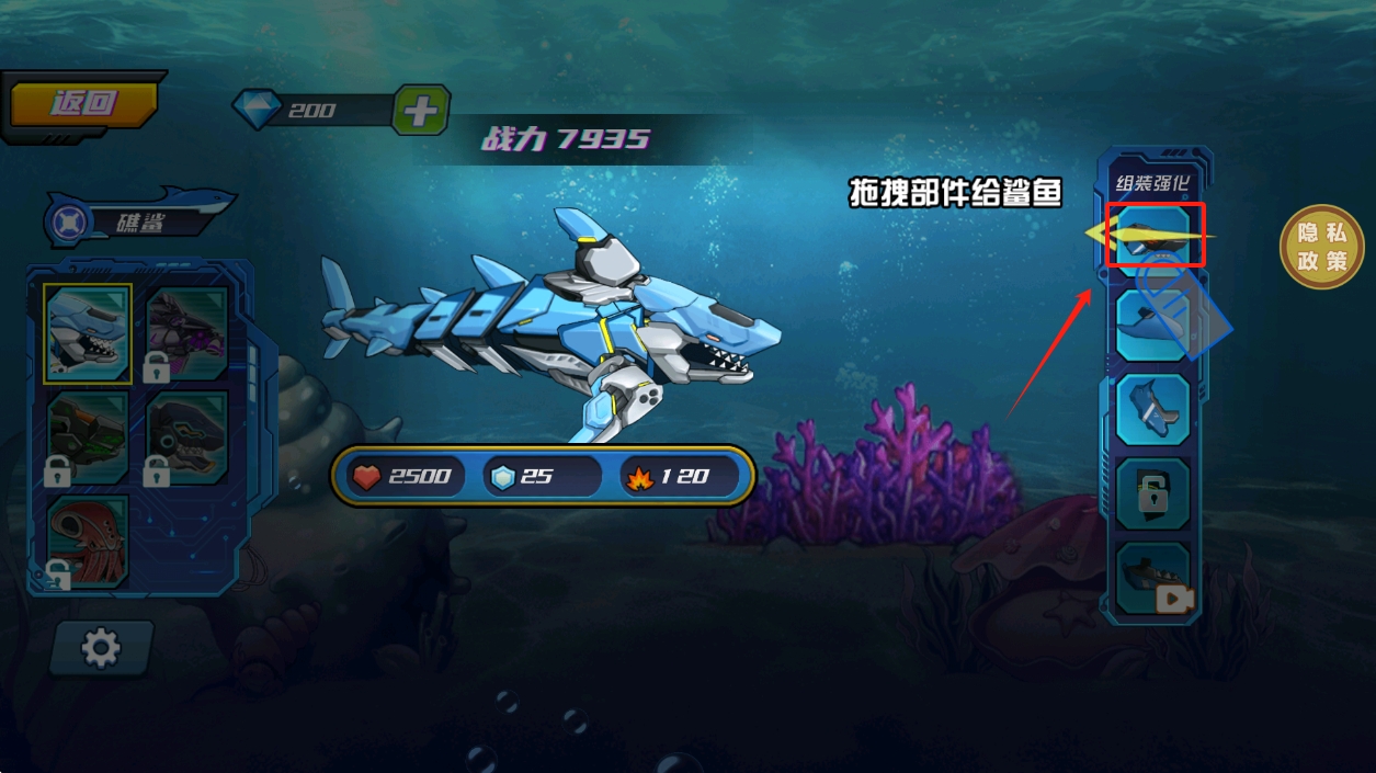 3。在组件界面中,将组件拖放到机甲上以完成设备组件并增强机械性能。