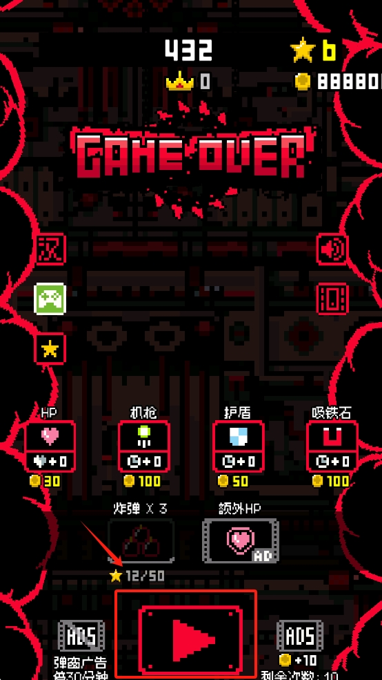 3。游戏结束后,单击“启动重新启动”按钮以再次挑战级别。
