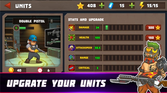 人类大战僵尸是一种类似于植物与僵尸的战略塔防御游戏。使用您的策略来击败僵尸。您首先需要有一个斯巴达英雄来抵抗那些可怕的僵尸。游戏中将有许多不同的武器。僵尸村具有特殊的技能和邪恶的僵尸领主。只需单击,单击,请注意每个角色的位置。有兴趣的朋友应该尽快下载