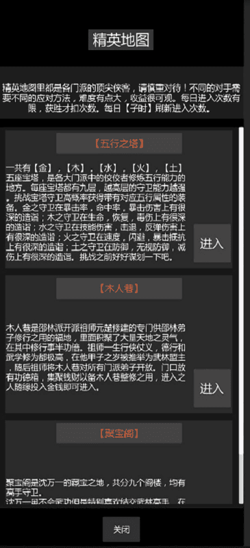 1。文本jianghu显示:使用文本详细解释游戏世界,清楚地呈现了诸如战斗效果之类的数据,并充分展示了江户的风格,使玩家可以沉浸在其中。