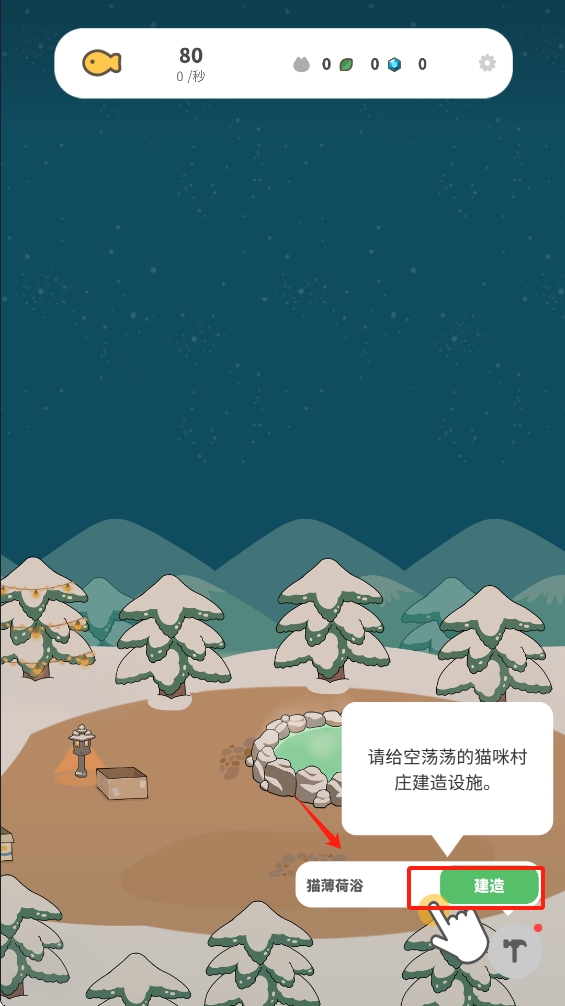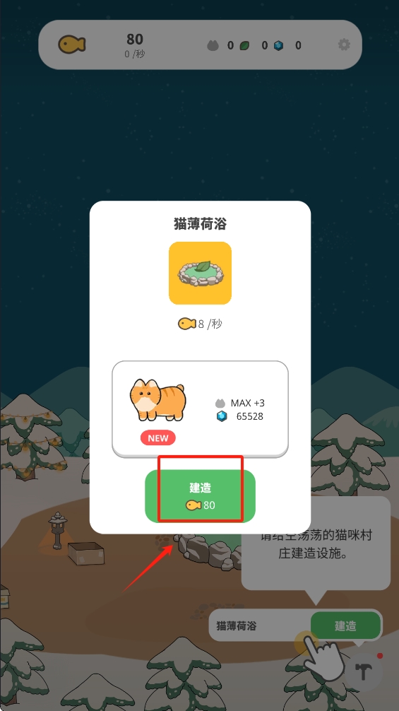 1.点击下方的“建造”按钮,开始为猫村建造设施。