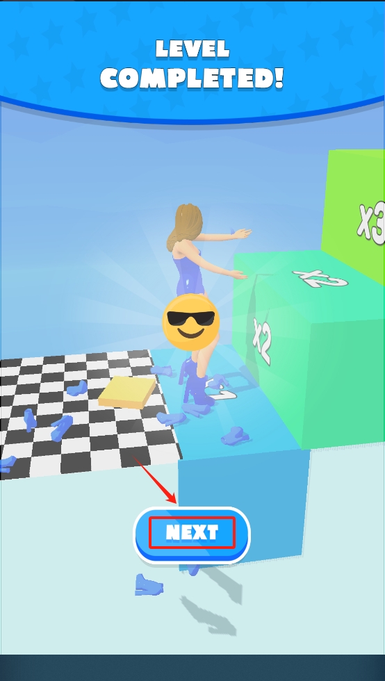 3、到达终点后,点击“NEXT”按钮即可进入下一关或进行其他操作。