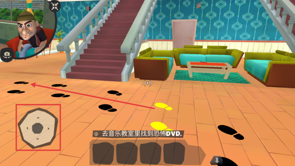 2.跟随地上的脚印,移动摇杆将角色移动到音乐教室。