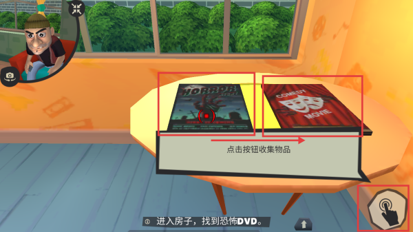 3.点击右下角按钮拾起或放下物品,将恐怖DVD放入喜剧DVD盒中即可完成特技。