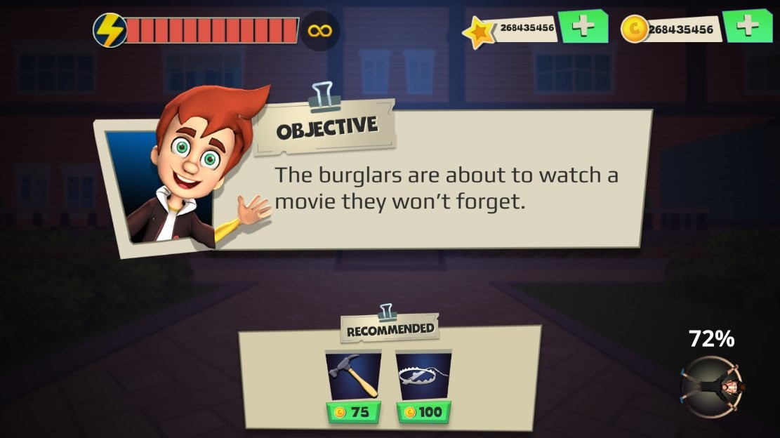 3、剧情驱动的挑战:以布莱恩与强盗的对抗为主线,引导玩家完成一系列剧情任务,设计恶作剧方案。每个级别都有独特的谜题解决和战略挑战。