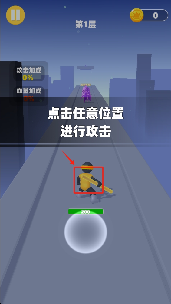 2.在游戏界面中,点击屏幕任意位置,角色就会向前攻击。
