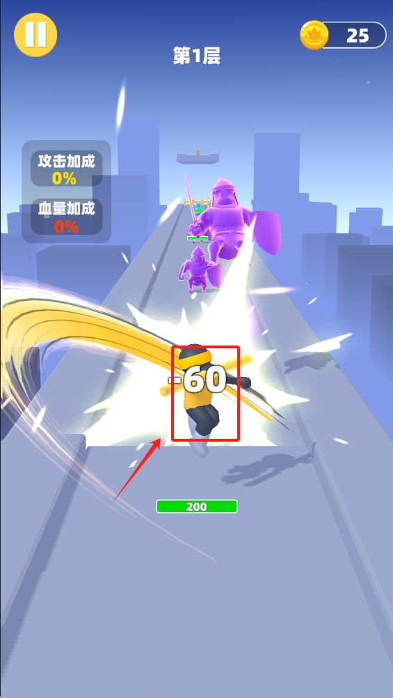 3.攻击前方的敌人。击败他们可以获得金币奖励,为后续升级做准备。