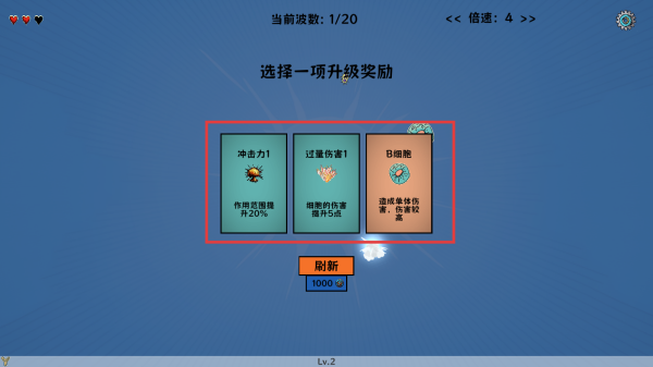 3.通过关卡后,可以点击选择升级奖励。