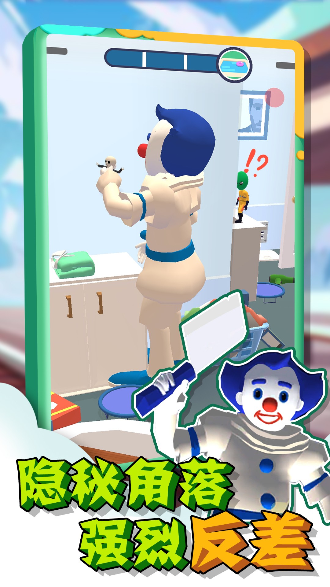 立即灵活反思,选择适合自己的队伍加入,充分体验狩猎与追击的无尽乐趣。一款风格可爱的古怪捉迷藏游戏。传统躲藏,追求对方势力的选择,可以随意更换衣服,使用各种道具完成捉迷藏考验,力争生存到最后。