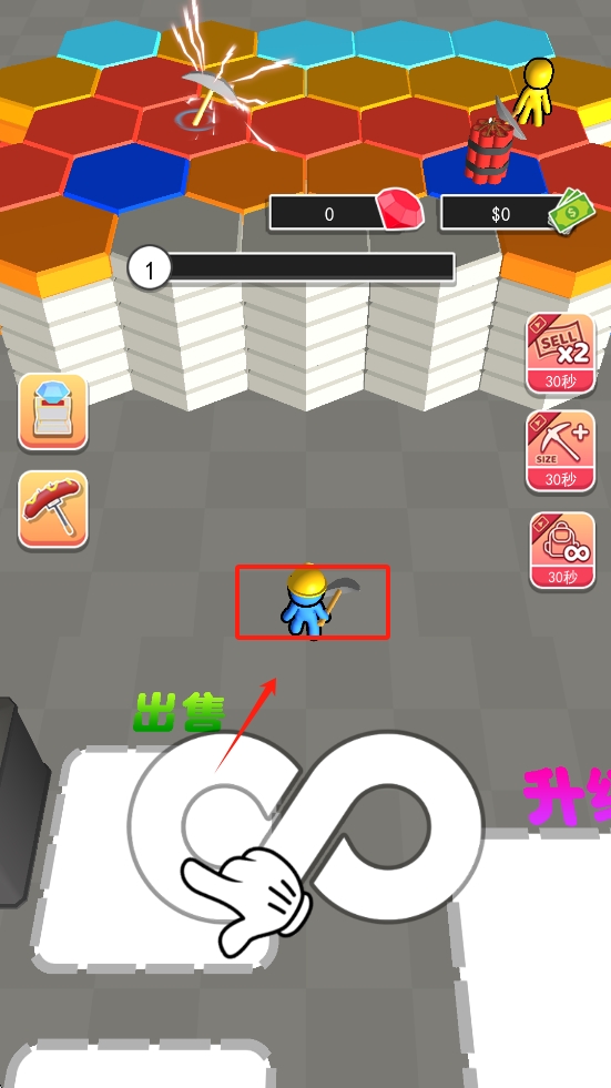 1.核心操作:玩家的主要操作是选择合适的工具,在矿脉或岩层上进行挖掘。每次成功的点击都会掉落资源并提供清晰的反馈。