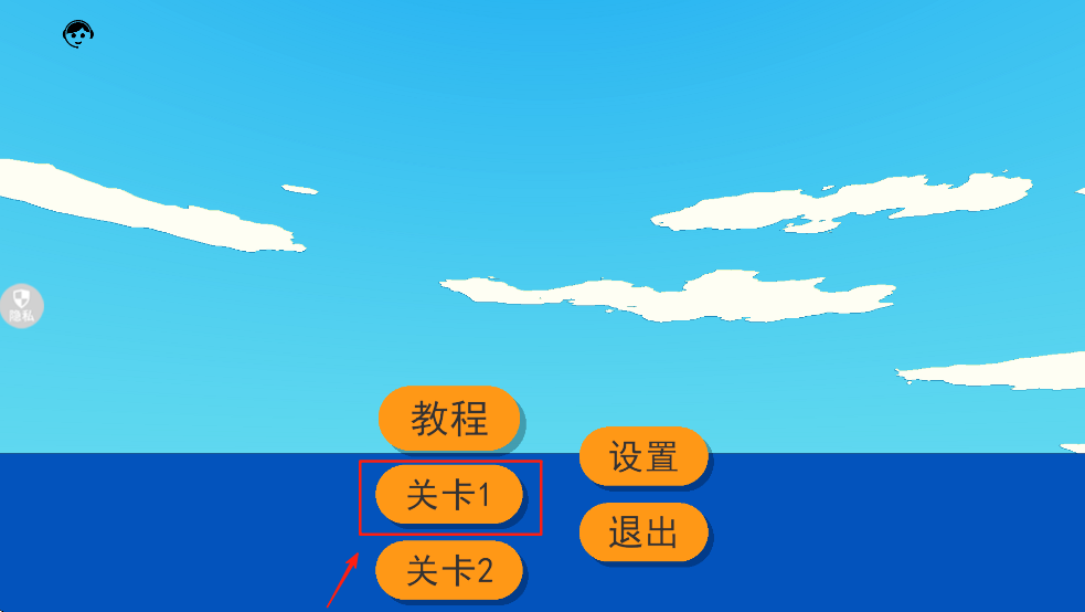 1.主菜单选择“关卡1”开始游戏,进入冒险世界,探索未知的旅程。