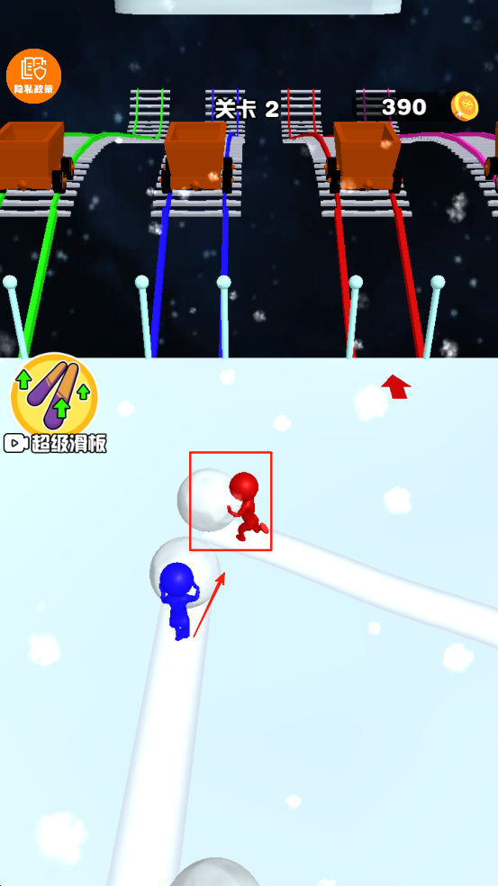 3.到达桥梁区域时,需要将雪球推入缝隙并铺路。如果雪球不小于目标大小,就无法完成,这就考验你的计划能力了。