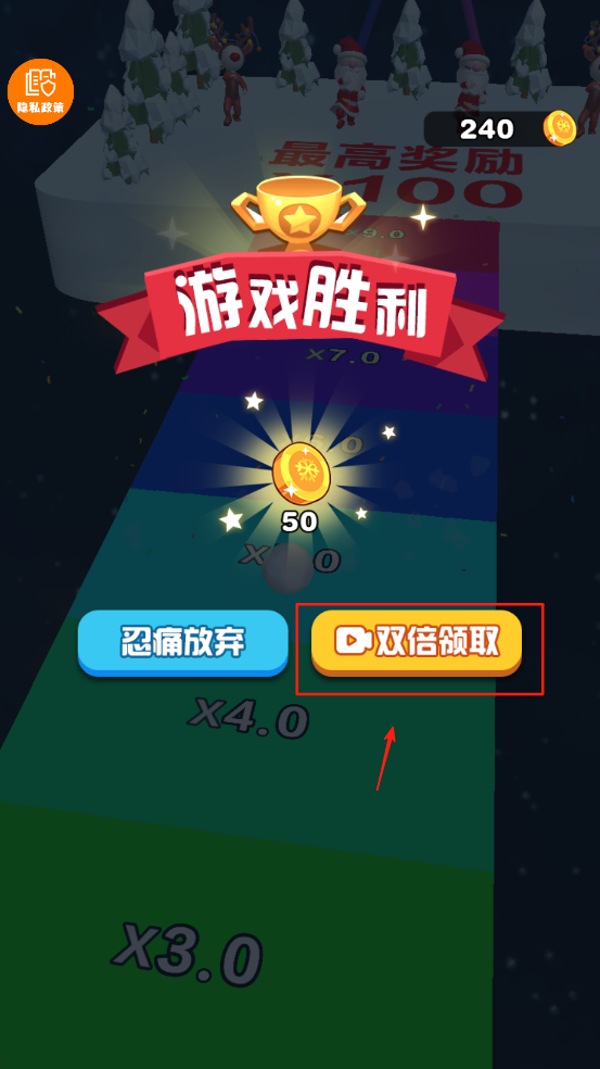 4、游戏获胜后,点击“双倍领取”按钮即可获得双倍游戏奖励。