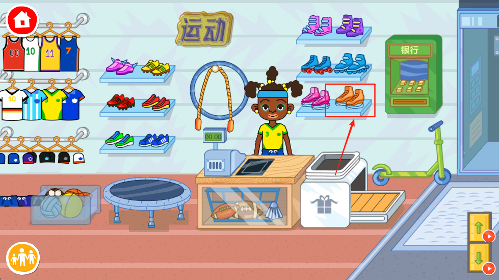 2、在体育用品区,挑选商品并展示在柜台上,等待顾客购买。