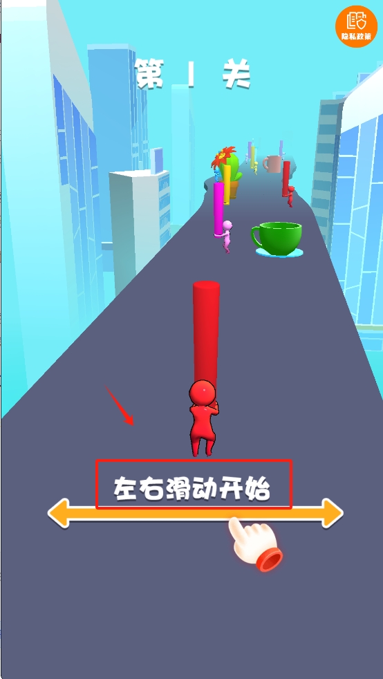 1.在游戏开始界面,左右滑动屏幕控制角色移动,躲避障碍物。