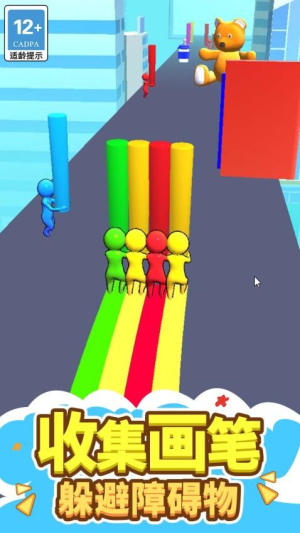 2.收集和保护:主动触摸并吸收同一条路线上的彩色粉笔,以强化你的团队。核心目标是让尽可能多的粉笔到达终点线,其数量和颜色会影响最终的绘画。