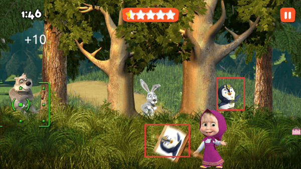 3.和你的动物朋友在森林里玩耍,根据玛莎手中的标志牌的图像拍摄相应的动物照片。
