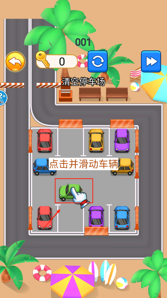 2.点击并滑动车辆以清理停车场。您需要合理安排车辆进出。