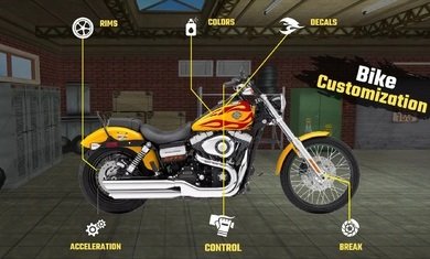 4.高度定制的赛车系统。玩家可以自由调节摩托车的各种参数,打造属于自己的专属赛车。