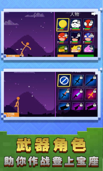 这是一款火柴人动作格斗游戏。在游戏中,你可以控制不同的火柴人去冒险。
