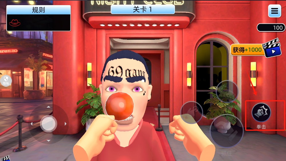 3. 然后,通过单击屏幕上的按钮与游戏环境进行交互,例如使用“拳击”按钮进行攻击。