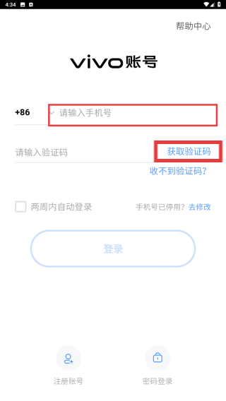 1.打开游戏,输入【手机号码】,点击【获取验证码】。