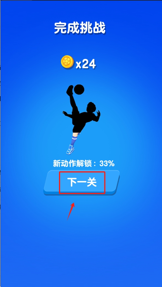 4.完成当前级别后,单击“下一级别”按钮继续您的足球之旅。