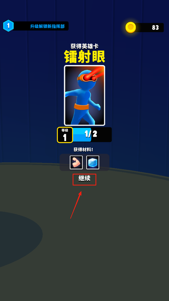4.获得新英雄后,点击“继续”按钮即可使用新英雄挑战下一关。