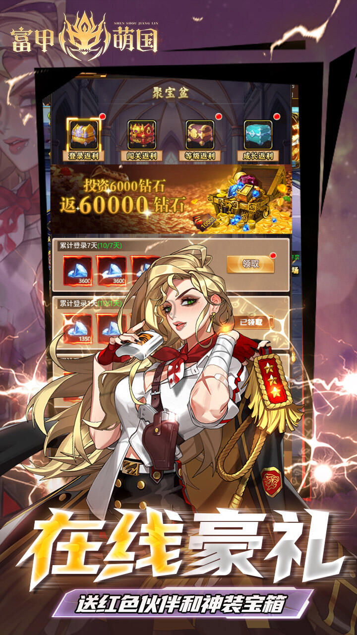 《富甲萌国圣兽降临》 是一款非常好玩的角色扮演游戏,融合了战斗、养成、策略等元素,给玩家带来丰富的游戏体验。在游戏中,你可以扮演一名勇敢的冒险家,探索一个萌萌哒的奇幻世界。这个世界,圣兽即将降临,你的任务就是聚集各种圣兽,对抗邪恶势力。通过组建强大的队伍,培养和强化神兽,你可以挑战各种敌人和强大的boss,保卫你珍爱的世界。游戏具有策略性的战斗系统。玩家需要合理安排队伍的战斗阵容,利用不同神兽的技能和特性来应对各种战斗情况。同时游戏还提供了丰富的养成系统。通过修炼神兽的属性、技能、装备,可以提升实力,创造强大的战斗力。此外,《富甲萌国兽降临》还拥有精美的图形和可爱的色彩设计,让人沉浸在梦幻的游戏世界中。丰富的剧情和任务也为玩家提供了更多的游戏乐趣和挑战。无论你喜欢冒险、战斗还是训练,这款游戏都能满足你的需求。快来加入《富甲萌国圣兽降临》,开始奇妙的冒险吧!