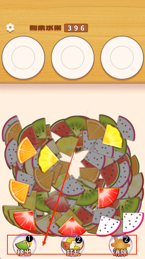 1.基本消除规则:点击两个或多个相邻的相同颜色的水果即可完成消除。