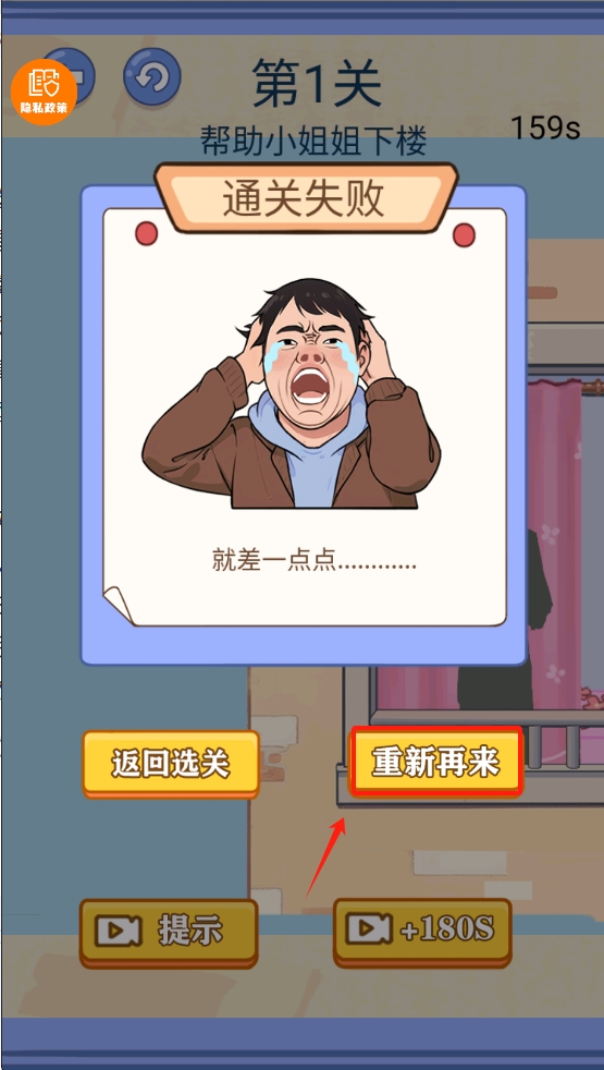 4.如果您未能通过关卡,请点击“重试”按钮再次尝试挑战该关卡。