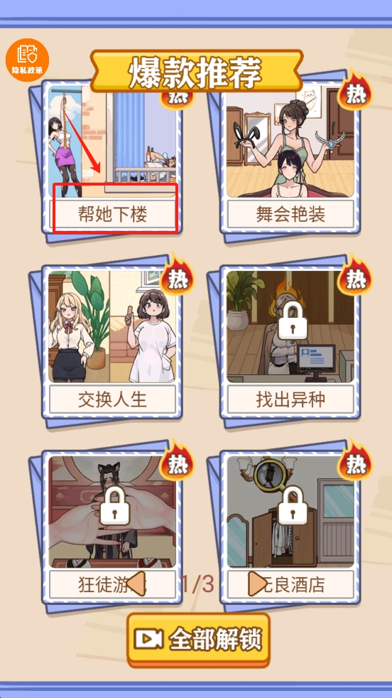 1.在游戏大厅中,点击选择你要挑战的关卡,比如“帮她下楼”。
