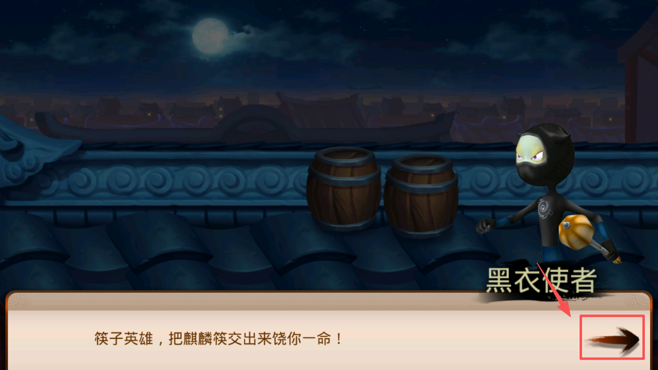 2.然后,点击对话中的箭头按钮,继续剧情并与角色互动。