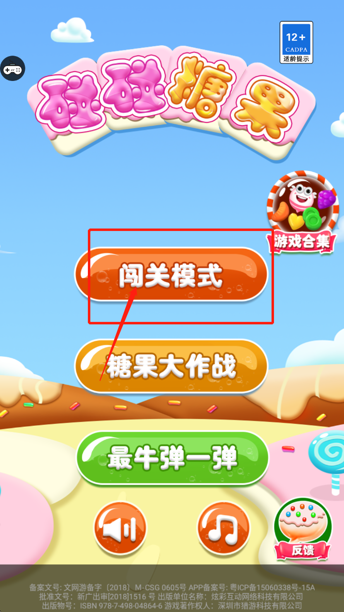 1.进入游戏,选择挑战模式开始挑战。点击不同颜色的糖果块来匹配两个或多个相同颜色的糖果即可消除它们。
