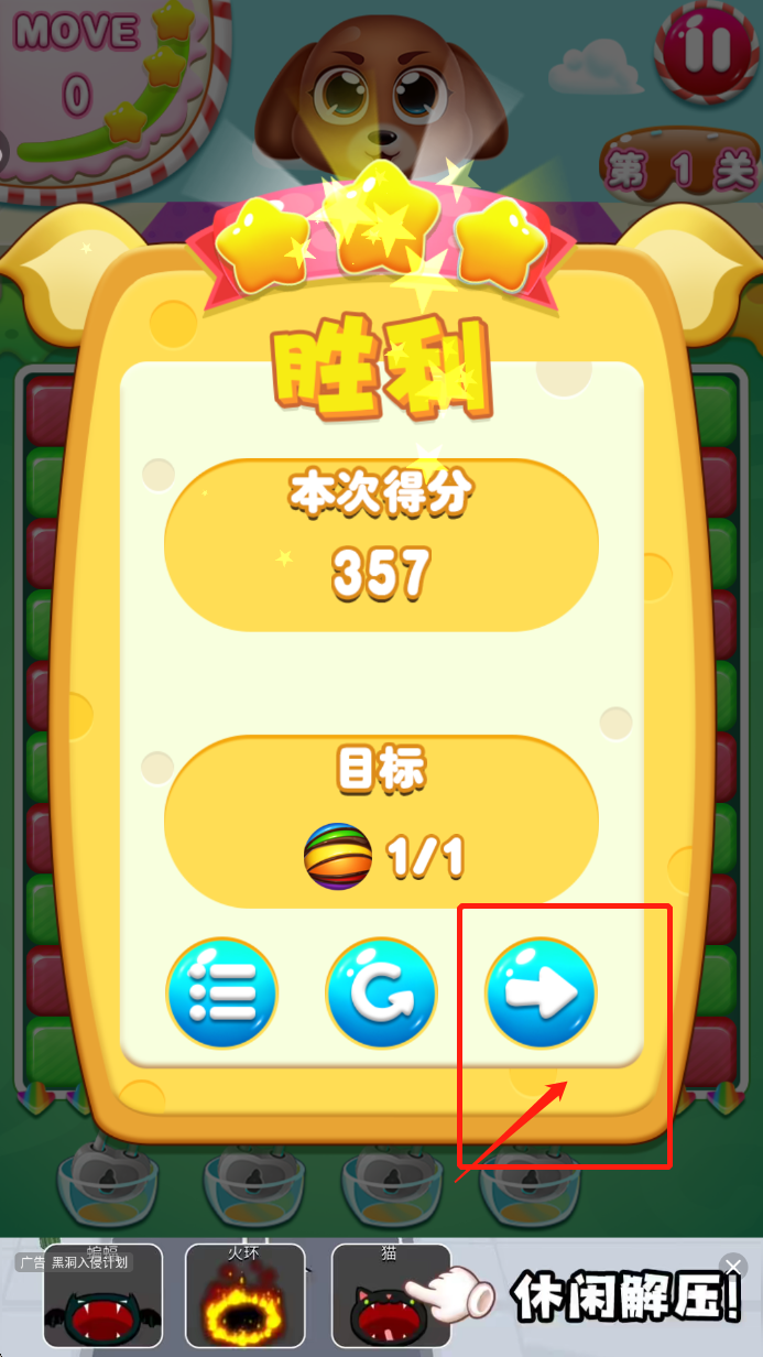 3.成功完成一关后,点击下一关按钮继续游戏。不断挑战更高的难度,享受放松减压的乐趣。