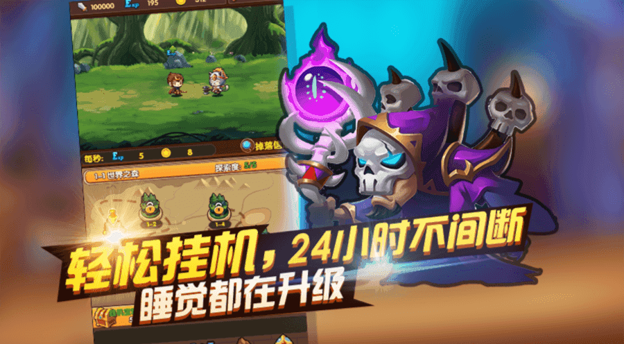 3、空闲福利系统:离线30分钟即可领取双倍金币。累计闲置12小时,将触发神秘宝箱,有概率获得SSR级英雄碎片。