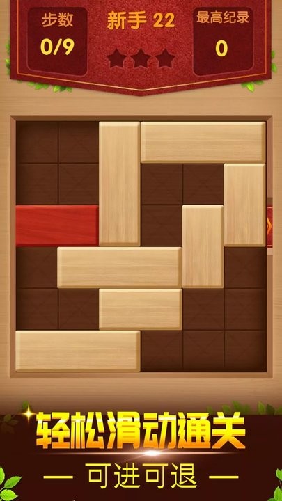 2. 游戏的目的是用最少的步数在最短的时间内将鲜红色的方块移到右边。
