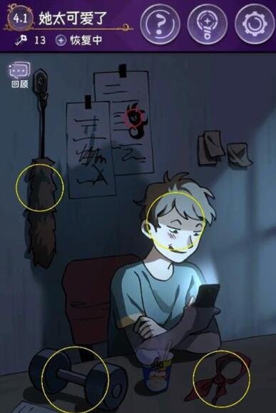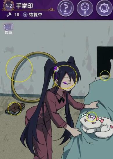 1.点击下方黄色区域,获取故事片段。找到红色区域隐藏的怪手。获取故事片段并将它们组合起来以完成结局。