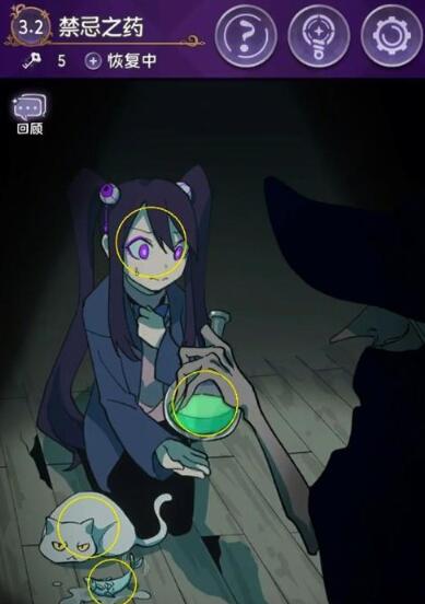 1.点击下方黄色区域,获取故事片段。在红色区域,发现隐藏的怪手,获取故事碎片,合成故事碎片,完成结局。