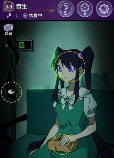 1.点击下方黄色区域,获取故事片段。在红色区域,发现隐藏的怪手,获得故事碎片,组合故事碎片完成结局。