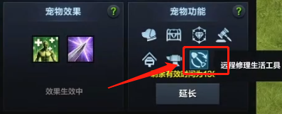 2、当我们的生活工具耐久度降低后,我们可以点击宠物的远程修复工具功能进行修复;