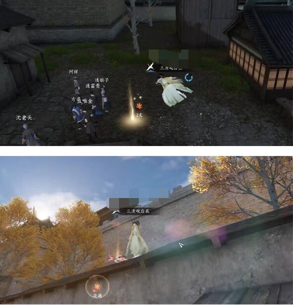 2.对话结束后,上屋顶拿风筝,使用轻功飞上去拿。
