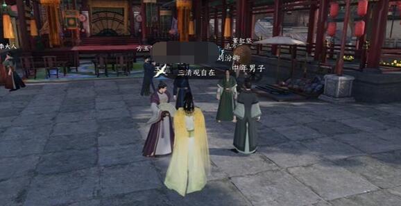 3.拿到风筝后,和屋外的一群人对话,跑到街上,和图中的两个NPC对话,选择【受邀参加宴会】。