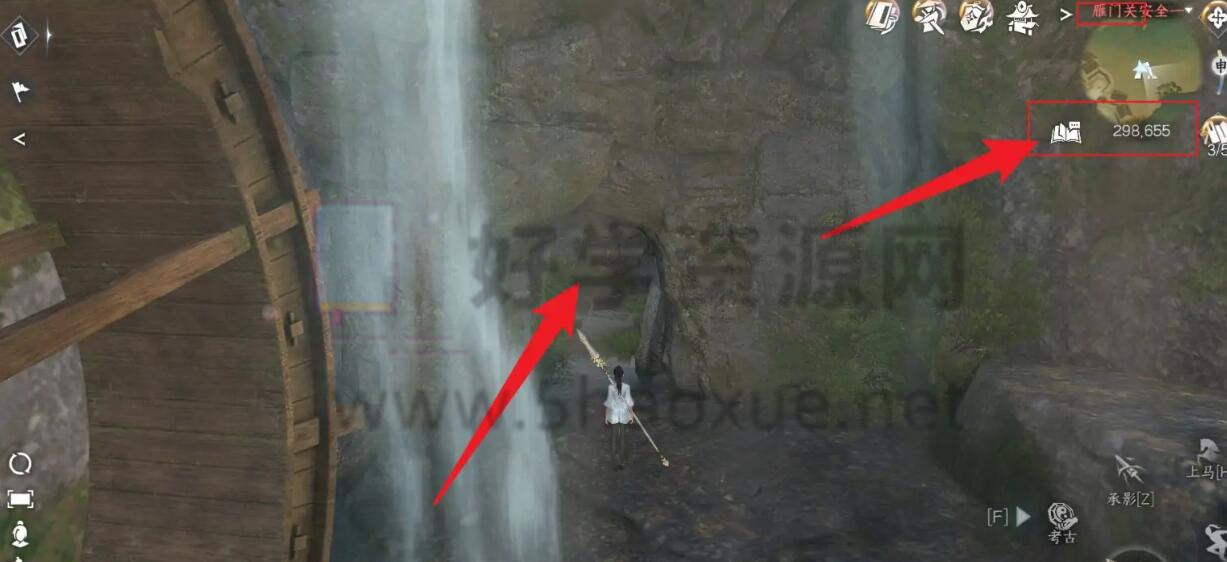 1、首先我们打开地图,前往雁门关坐标:(298,655),从如图所示的瀑布下方入口进入白龙洞。