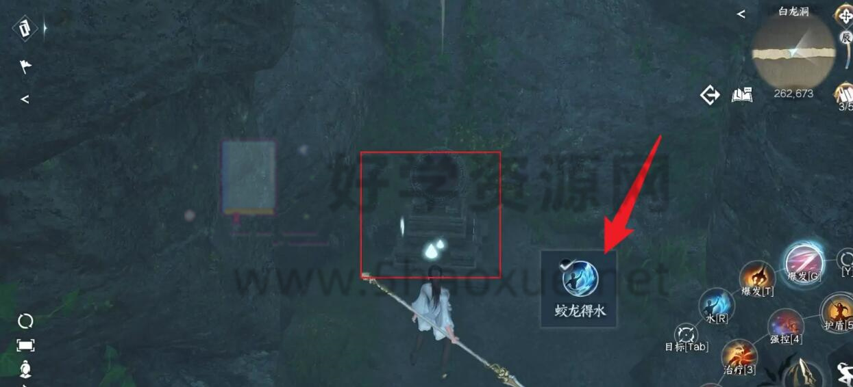 2、然后在日晷上使用龙的取水技能,沿着水位上升。